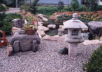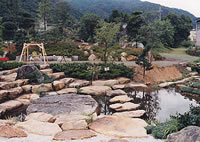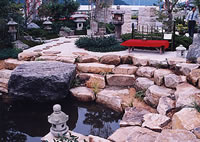 当展示場では、従来の造園関連商品はもとより、今回新しくご提案させていただく、短期間の施工と安価な環境に優しい石積、石張、門柱シリーズ『ユニロック』を展示しております。また、各種石工事からガーデングッズまで、お庭造りのテーマパークとしてスタートいたします。